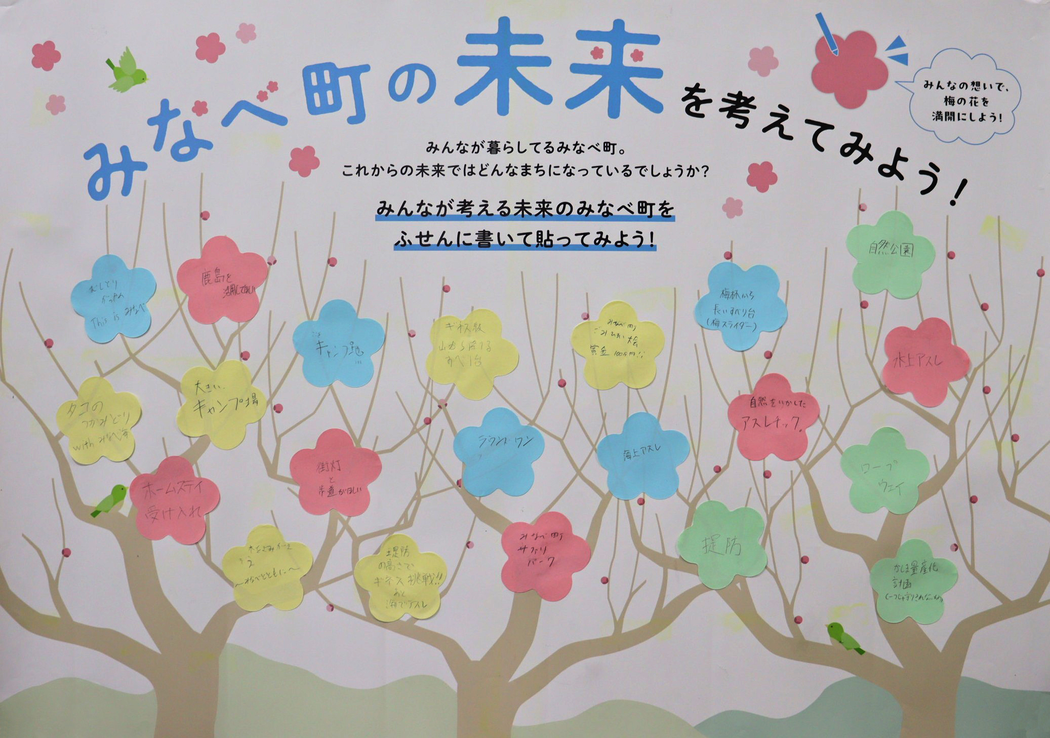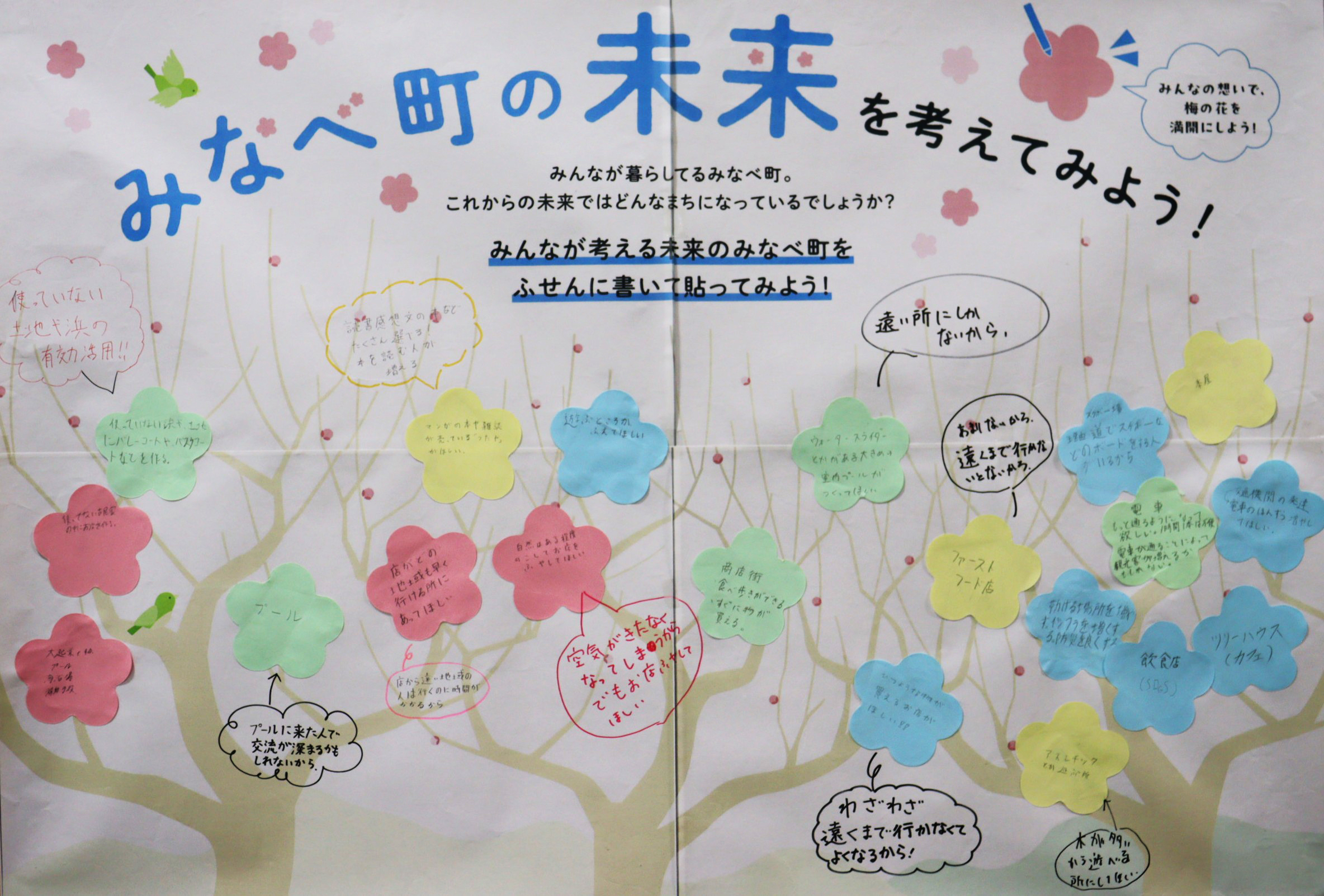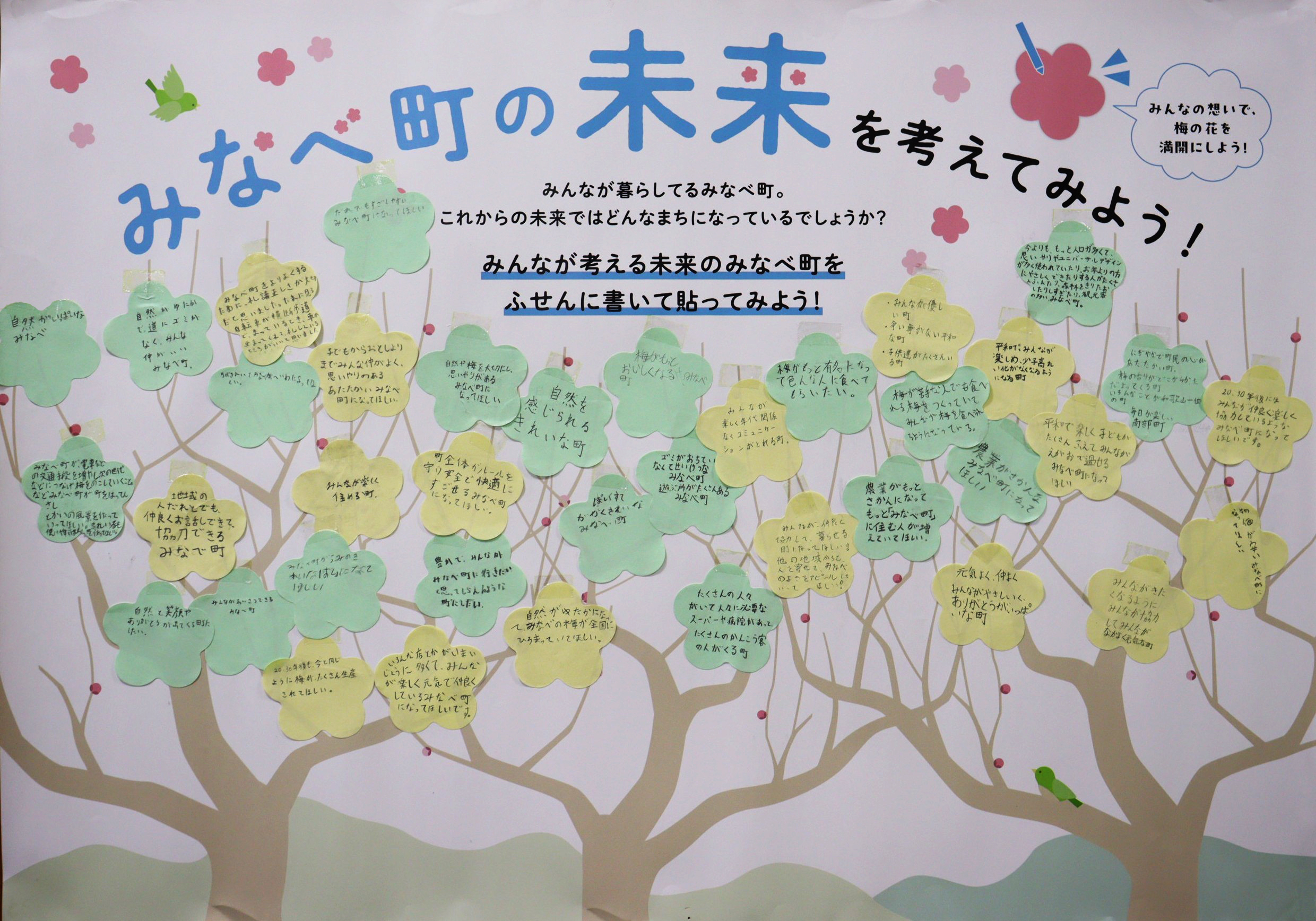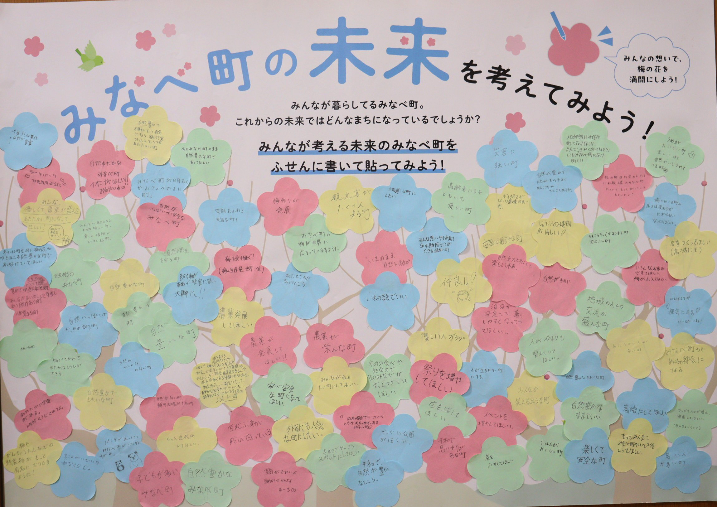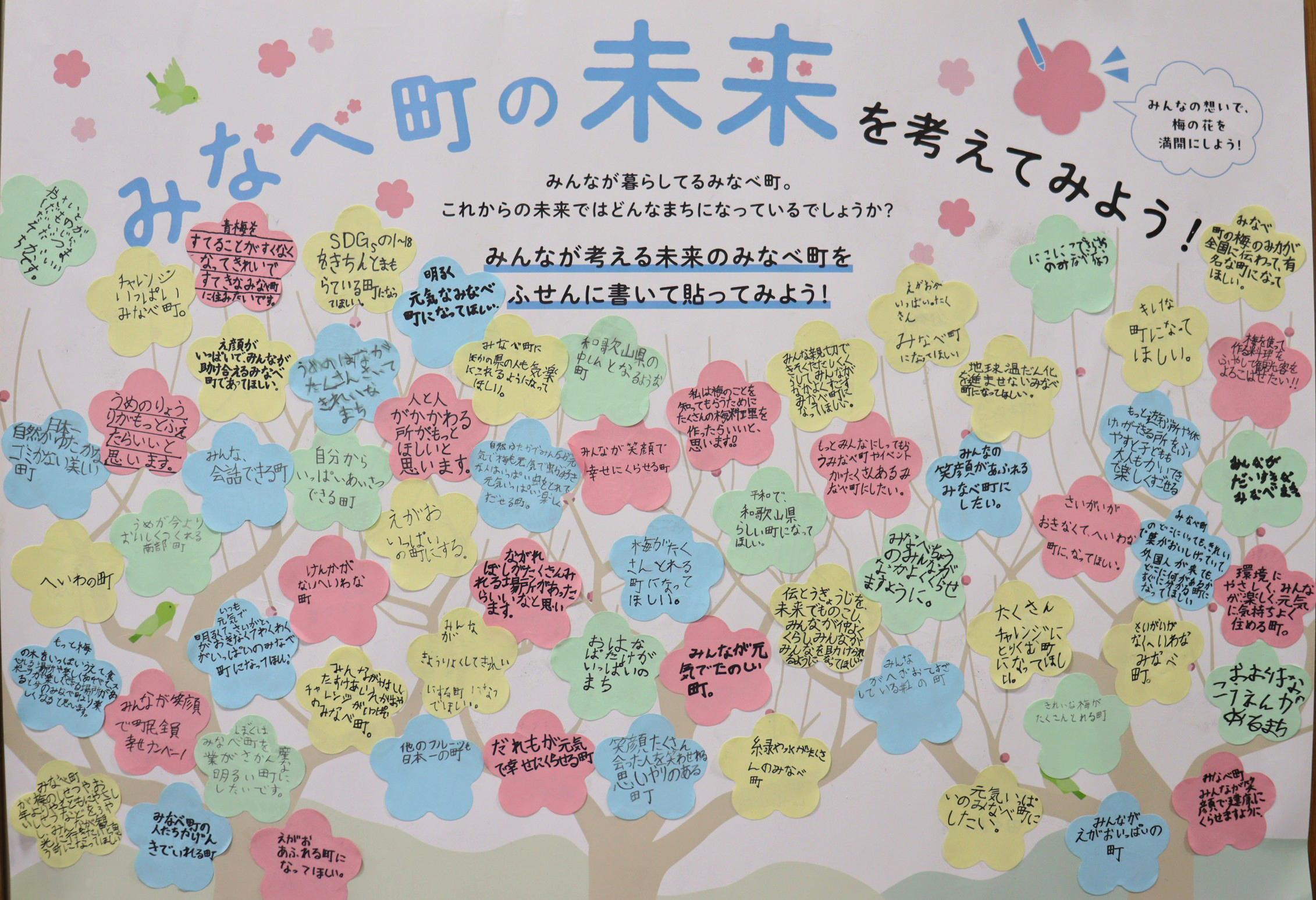 子どもたちが思い描くみなべのかたち みなべ町がこれまで培ってきたまちの姿を受け継ぎ、これからのみなべ町を担うのは子どもたちです。 子どもたちが思い描くのはどんな未来でしょうか。 南部小学校 岩代小学校 上南部小学校 高城小学校 清川小学校 南部中学校 上南部中学校 お問い合わせ先 総務課 電話 0739-72-2051 FAX 0739-72-1223